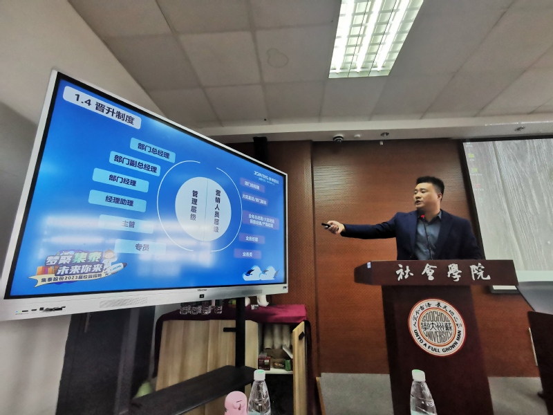 随后,用人单位代表依次上台进行宣讲,对企业背景和发展历程,企业文化与未来发展方向,薪资水平与福利待遇,管理培养体系与晋升发展通道等方面进行了具体介绍,让同学们对企业和岗位都有了初步的了解和意向。