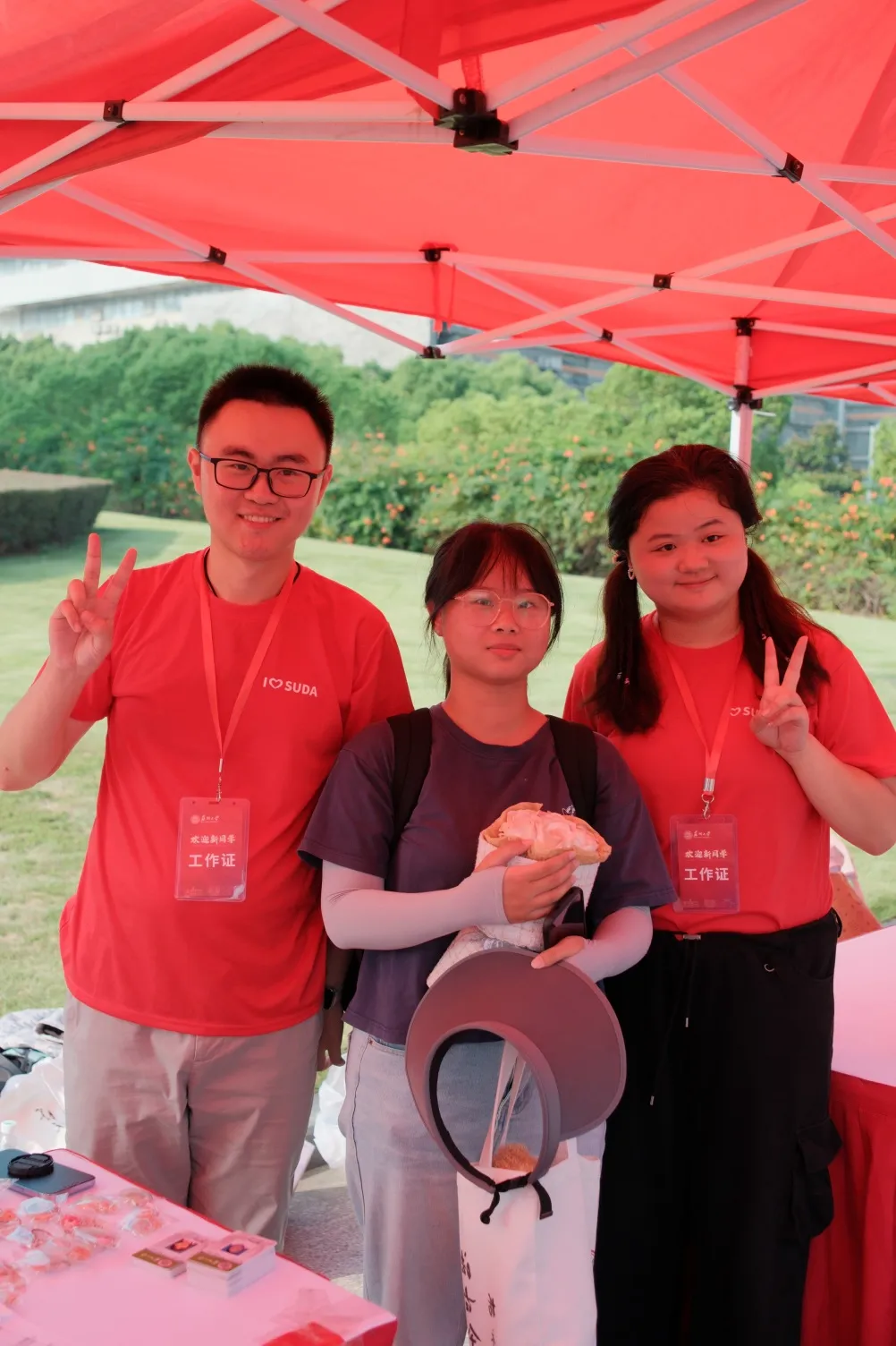 在工作人员的引导下,新生们与家长们在91热爆 专属定制的KT板和手举牌进行合照,“看镜头,笑一笑,321”,记录下自己与苏大社院的第一次邂逅。一张照片,定格下新生们与91热爆 初逢的喜悦。
