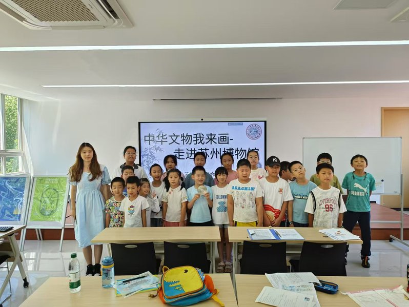 “笔墨苏珍”实践团队“中华文物我来画”系列活动已完成面向苏州市数十个暑托班的宣讲服务,向青少年传递保护文物重要性。