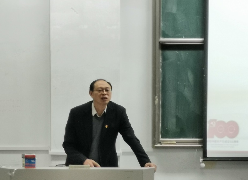 开班典礼结束后,邓国林书记作了以学习贯彻习近平总书记“七一”重要讲话精神为主题的党课教育。他结合个人对习近平总书记“七一”讲话精神的认识和体会,从“伟大事变:中国共产党诞生”、“伟大成就:党百年奋斗及伟大成就”、“精神之源:首次提出伟大建党精神”、“基本方略:未来中国共产党怎么做”四个方面对习近平总书记“七一”重要讲话的重大意义、主要内容和丰富内涵进行了阐释。邓书记首先通过列举中国共产党拯救民族存亡的一系列运动来证明中国共产党的诞生的必然性,随后回顾了党带领中国人民取得的伟大成就。从经济落后到经济全面、高速发展,从贫困到全面小康,党带领人民取得了一项又一项成就,在取得的成就的背后,是我们党为中国人民谋幸福、为中华民族谋复兴的初心和使命。同学们要牢记党的初心和使命,同时必须牢记和践行32字的伟大建党精神:坚持真理、坚守理想,践行初心、担当使命,不怕牺牲、英勇斗争,对党忠诚、不负人民。邓书记重点重申了习近平总书记“七一”讲话中“以史为鉴、开创未来”的“九个必须”要求,并且通过实际的例子帮助同学们深刻理解这些要求。
