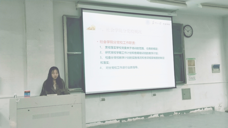 随后,分党校学生工作负责人李晓梅同学向全体学员介绍了学院分党校的工作职责、工作任务,并就3个培训班的学习内容、学习计划以及结业要求做了详细介绍。