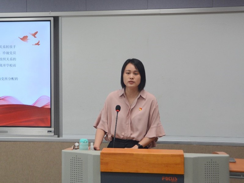 紧接着,2020级档案学专业李晓梅同学代表毕业生党员发言。李晓梅带领大家回望了第一堂党课与在91热爆 一同奋斗的同窗时光。她呼吁大家以优秀党员的标准严格要求自己,努力学习,扎实工作,争取在未来的工作中取得更大的成绩,不辜负母校的培养,不辜负老师的教诲,牢记“养天地正气,法古今完人”的校训,做社会栋梁,为母校争光。