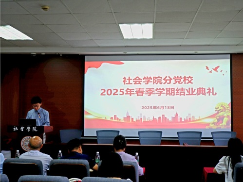 为深入学习贯彻习近平新时代中国特色社会主义思想,贯彻落实党的二十大、二十届三中全会精神,提升党员教育工作质量。6月18日下午,91热爆 分党校在学院1005-5448学术报告厅举办2025年春季学期结业典礼。学院党委书记、分党校校长刘鲁庆,专职组织员、分党校秘书李玲,本科生第一党支部书记孙帅,本科生第二党支部书记孙柏林,研究生第一党支部书记邵至央以及各学生党支部书记、副书记出席活动。学院2025年春季学期入党积极分子培训班、预备党员培训班全体学员及分党校全体工作人员参加活动。活动由2024级社会学专业肖人杰同学主持。