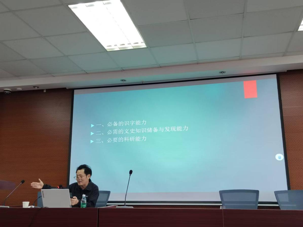 围绕报告主题——“晚晴名宦手札整理应具备的三种能力”,王新才教授开篇即明确提出古代相关手札整理需具备识字能力、文史知识储备与发现能力、科研能力等三种能力,且认为这三种能力密切相关、互为促进。随后,王教授通过例举大量晚清名人手札中异体字的考证,进一步阐述了三种能力如何相辅相成。首先,对于古人手札的整理需要认识各种字体继而才能识文和断句,而这就需要具备一定的识字能力,王教授指出这看似简单但实际是一个很难的过程,且古人手札整理这项复杂的工作是后续文史研究的基础尤为重要;其次,认字的过程还需要具有丰富的知识储备和敏锐的发现能力,王教授以人物字号为例说明了这一点,并强调发现需要善用史料类、年谱、全集、书札、日记、数据库等工具;最后,王教授提出认字的过程也是做研究的过程,名人手札整理除了登记、编目、考证等基本功外还需要进行价值判断,而价值判断又需要具有一定的知识储备以及善用各种工具进行查证。王教授还特别说明做科研要“大胆假设,小心求证”,并教导同学们做学问不枯燥,希望大家都找到自己感兴趣的研究领域,结合自己的兴趣发挥才能和创造力。