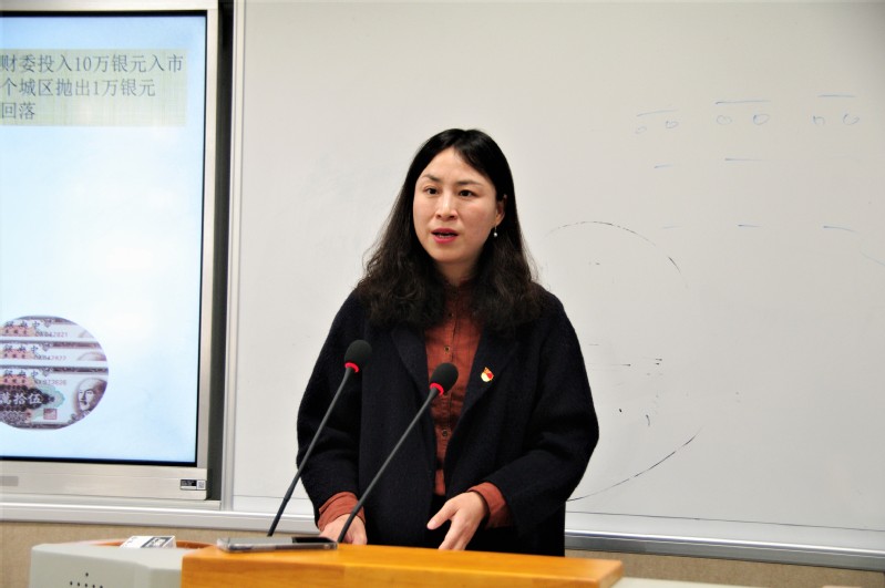 第一篇章伊始,历史系支部党员鲁萍老师带领党员回首新中国史。她按时间历程,结合1949年在北平市第一次各界人民代表会议,1950年妇女地位提高,1952年成渝铁路通车,1953年开始社会主义改造,1954年通过中华人民共和国第一部宪法,1955年北京市百货大楼在王府井大街开店营业等历史事件,带领在场党员回顾新中国发展史,感受新中国发展过程中老一辈人不断探索、不懈奋斗的伟大精神。