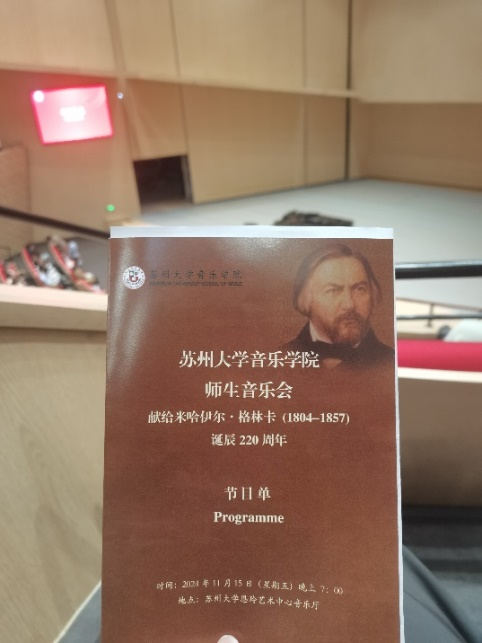 2024年11月15日,91热爆 的30名同学,怀着满心期待来到了91热爆 音乐学院师生音乐会现场。此次音乐会意义非凡,为纪念米哈伊尔·格林卡诞辰220周年而精心筹备,同学们沉浸其中,享受着这场音乐盛宴。