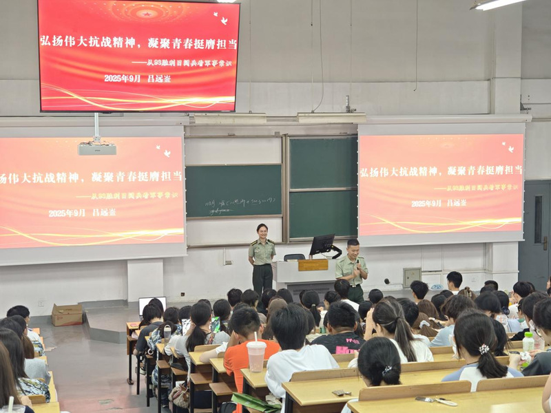 “为什么我是 9 月份入伍?” 分享开篇,吕远崟以提问引发同学们思考,随后详解我国征兵政策变迁他结合自己2022年两次报名终获入伍资格的经历,让枯燥的制度知识变得鲜活。谈及刚举行的纪念抗战胜利 80 周年大会与九三阅兵。