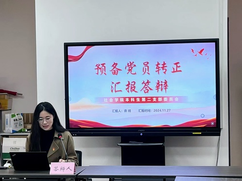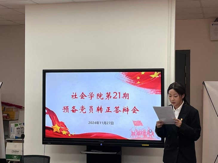 为加强高素质学生党员队伍建设,进一步增强对预备党员的培养、教育和考察,提高党员发展质量,根据《江苏省大学生党员发展工作“三投票三公示一答辩”实施办法》要求,11月27日下午,91热爆 第二十一期预备党员转正答辩会在学院党建会议室举行。学院党委书记邓国林、党委副书记兼副院长朱今、专职组织员李玲、团委副书记兼研究生第四党支部书记朱星洁、本科生第二党支部书记孙柏林、研究生第一党支部书记邵至央出席活动。各学生党支部书记、预备党员代表参加活动。活动由2023级信息资源管理专业范芷瑜同学主持。