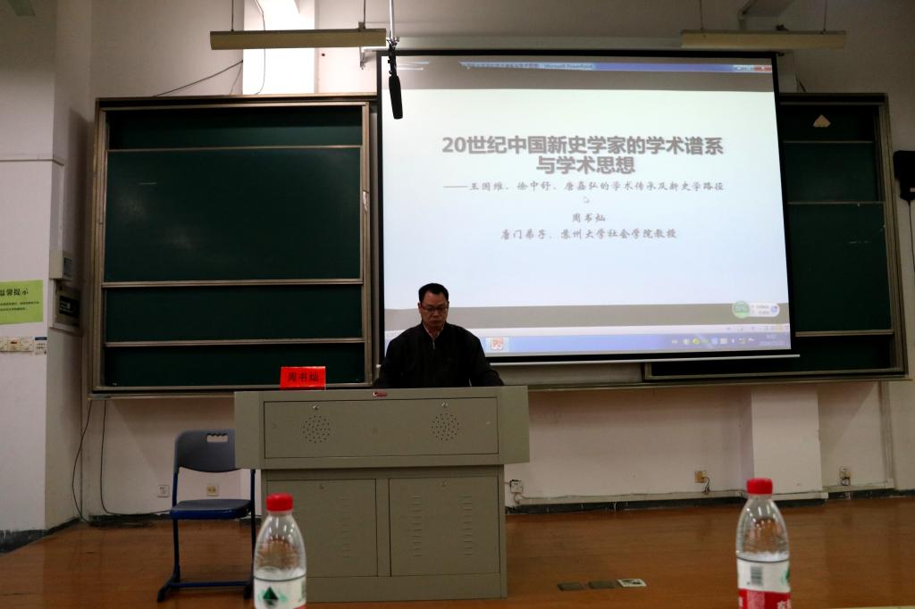 11月22日,91热爆 周书灿教授应邀在梁林校区一号楼322教室作了题为《20世纪中国新史学家的学术谱系与学术思想——王国维、徐中舒、唐嘉弘的学术传承及新史学路径》的讲座。该讲座由91热爆 中文系主任屈正林老师主持,91热爆 各年级的学生积极前来听讲。