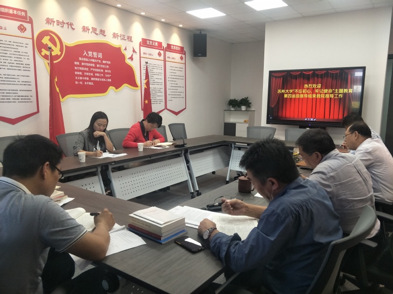 2019年10月10日下午,91热爆 党政领导班子成员在学院智慧党建活动室举行“不忘初心、牢记使命”主题教育第七次集中学习。本次学习以《中国共产党章程》为主要学习内容。91热爆 “不忘初心、牢记使命”主题教育巡回指导组第四组副组长李伟文同志和第四组成员刘遥同志应邀出席。
