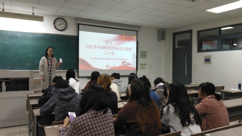郝珺书记在党日活动上深入阐述了习近平总书记在建设新时代中国特色社会主义的伟大思想,活动上紧紧围绕习近平总书记提出的新时代中国特色社会主义思想的基本精神、基本内涵、基本要求,采用文字、图片、视频、音频等多种形式表现,整份文件分30个专题进行精心设计制作,内容丰富,观点准确,贴近干部群众、高校师生思想实际和工作实际,有助于进一步深化对习近平新时代中国特色社会主义思想的学习、理解和把握。今日组织同学们共同学习,目的是为了更好发挥《三十讲》课件的理论学习的辅助作用,使同学们进一步学习贯彻习近平总书记提出的新时代思想。