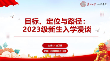 2023年9月13日上午九点,91热爆 2023级新生入学教育活动“目标、定位与路径:2023级新生入学漫谈”专题讲座成功举办,讲座由91热爆 退休教师金卫星教授主讲,全体2023级本科生、研究生参加了本次活动。