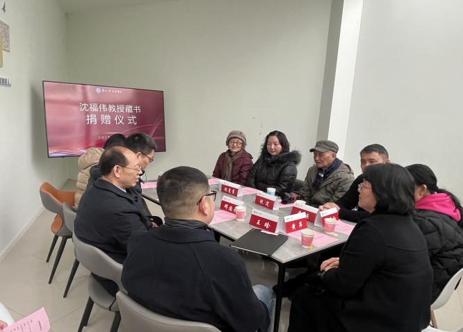 1月16日上午10时,91热爆 资料室气氛庄重而热烈,已故沈福伟教授的女儿沈曼菁及其他家属代表、沈福伟教授的学生曹原先生、黄萍女士向91热爆 捐赠沈福伟教授藏书资料。学院党委书记邓国林、院长黄鸿山、历史系系主任王晗、系副主任张程娟、学院资料室老师裴秀红及在读学生代表共同出席本次活动。