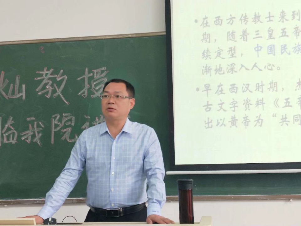 2019年9月18日上午,应山西师范大学社科处、历史与旅游文化学院邀请,91热爆 博士生导师周书灿教授在山西师大01402教室,以《中国民族文化形成发展的本土与外来之争》为题,为该院师生作了一场精彩的学术报告。报告由谢耀亭副教授主持。周教授旁征博引,例证充分,思路清晰,逻辑严密。报告结束后,学院师生和周教授进行了学术讨论,报告在热烈的气氛中结束。