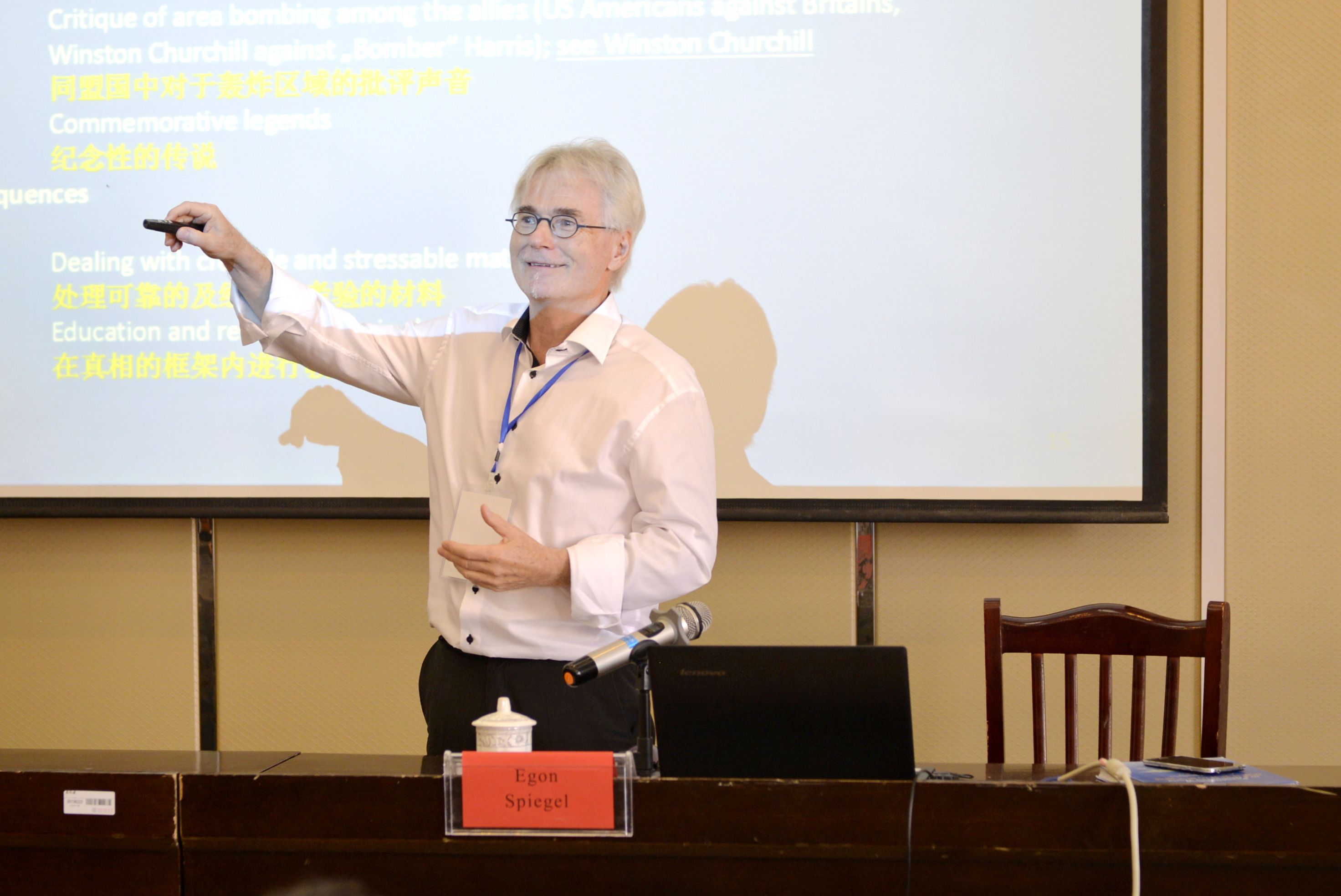 (德国教授 Egon Spiegel 作大会发言 记者 陈广锐 摄)