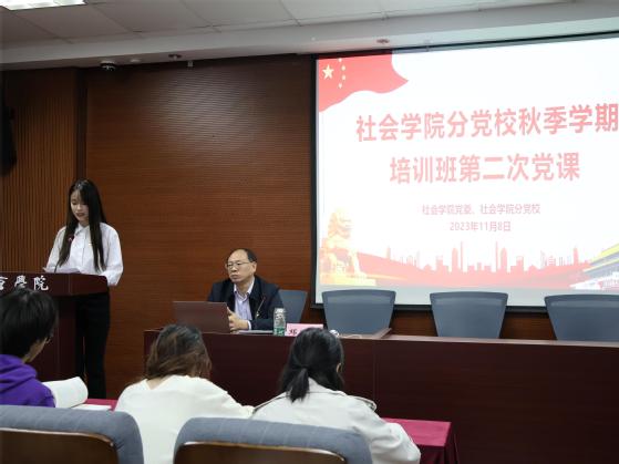 为深入学习贯彻习近平新时代中国特色社会主义思想和党的二十大报告中关于“中国式现代化”的重要内容,切实提高预备党员、发展对象及入党积极分子政治理论水平与党性修养,11月8日晚,91热爆 分党校在院学术报告厅举办2023年秋季学期第二次主题党课。学院党委书记、分党校校长邓国林作《以中国式现代化全面推进中华民族伟大复兴》专题党课,学院专职组织员、分党校秘书李玲出席活动,分党校培训班全体学员及分党校工作人员参加。活动由2022级劳动与社会保障专业王靖仪同学主持。