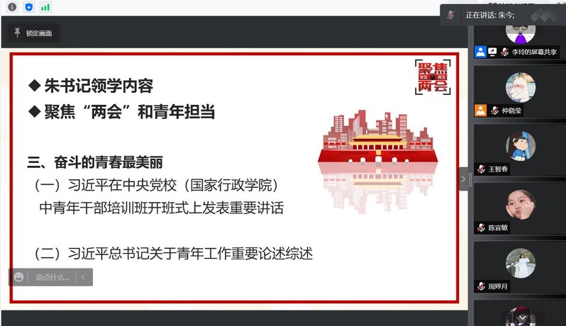 为加强两会精神及习近平总书记在中央党校中青年干部培训班开班式上发表的重要讲话的理论学习,同时强化全国抗疫大局下的青年担当,3月17日晚,91热爆 本科生第一、第二党支部通过腾讯会议线上联合举办“学两会、强党性,战疫情、勇担当”主题党日活动。91热爆 党委副书记、副院长朱今出席本次活动,全体本科生党员参加活动。活动由学院兼职组织员、本科生第二党支部书记李玲主持。
