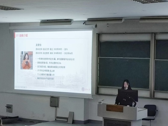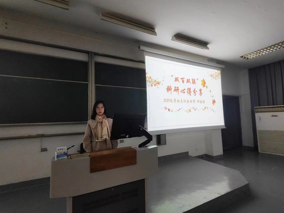 随后,2021级劳动与社会保障专业柳晓晗、2022级社会工作专业硕士研究生吴香怡进行了科研经验的分享。柳晓晗同学从科研项目申报流程与开展研究两个方面向同学们进行了具体介绍,并建议有志于科研的同学一定要拒绝拖延,与指导老师保持密切联系。吴香怡同学分享了常用的学习平台,如知网、国家哲学社会科学中心、BiliBili视频网等,她认为每一个同学要学会利用各类资源,并勉励同学们:利用课余时间多读书、多考证、多参与活动。