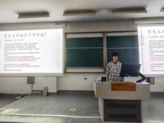 2021级历史学(师范)专业秦柏杨同学首先就学生工作经验进行分享。秦柏杨同学结合自身学生工作经历,向同学们分享了在专业学习和学生工作之间保持平衡的诀窍。他认为学生工作意味着一定休息时间的牺牲,甚至意味着与学业的冲突,只有做好思想建设,才能确保平衡两者。