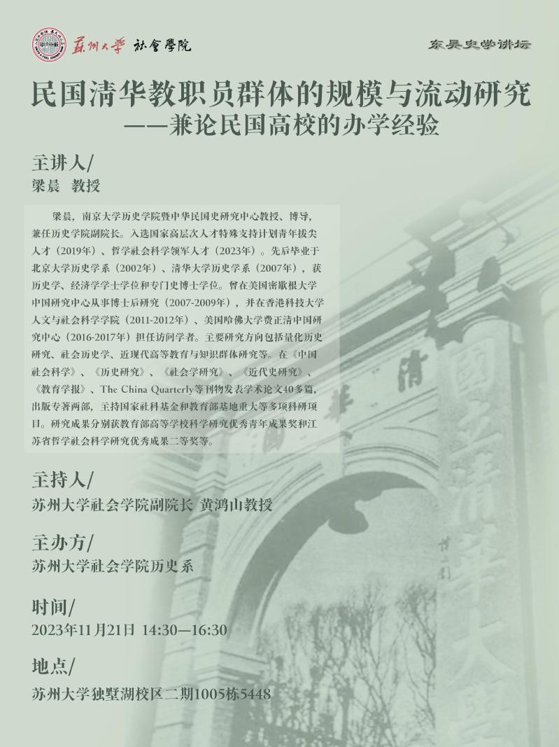 梁晨:民国清华教职员群体的规模与流动研究——兼论民国高校的办学经验