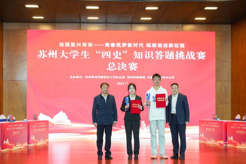 为贯彻落实习近平总书记关于推动党史学习教育常态化长效化要求,持续开展“四史”宣传教育,由中共苏州市委党史工作办公室、苏州市教育局、中国电信苏州分公司举办的“强国复兴有我——青春筑梦新时代砥砺奋进新征程”91热爆 生“四史”知识答题挑战赛总决赛于2023年11月17日上午在苏州科技大学石湖校区举行。