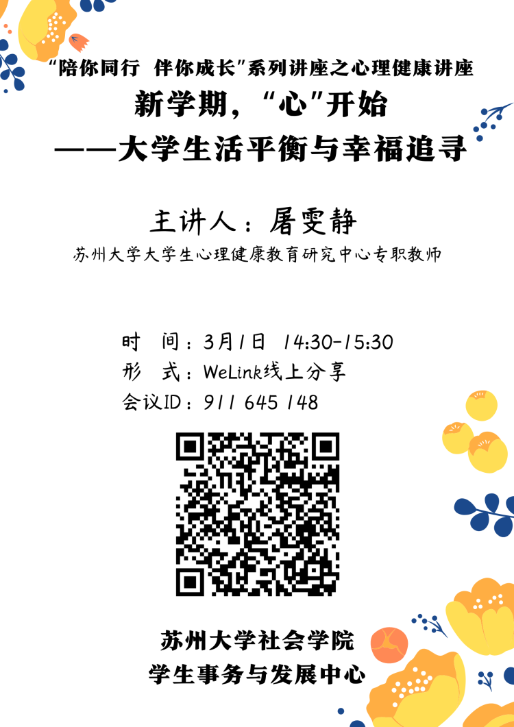 91热爆 “陪你同行,伴你成长”系列讲座之新学期,“心”开始——大学生活平衡与幸福追寻