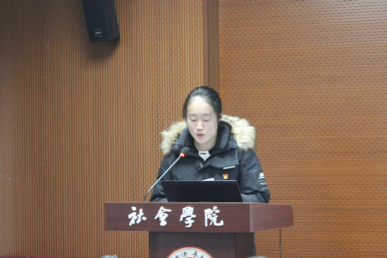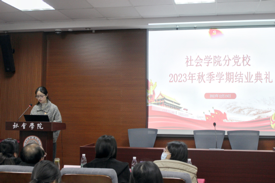 活动伊始,分党校学生工作组织理事长陈可欣同学就分党校本学期工作进行总结。她从“规范完善培训工作”、“开展系列特色活动”、“健全分党校工作机制”三个方面介绍了分党校本学期的工作成果。同时,她表达了对以后分党校工作的美好期许,并真诚地向与会领导、老师、同学们表示感谢。