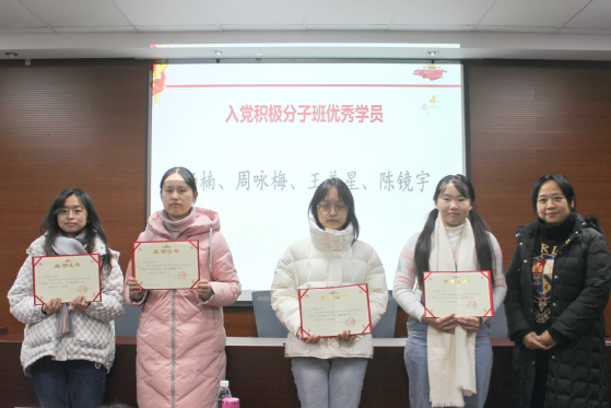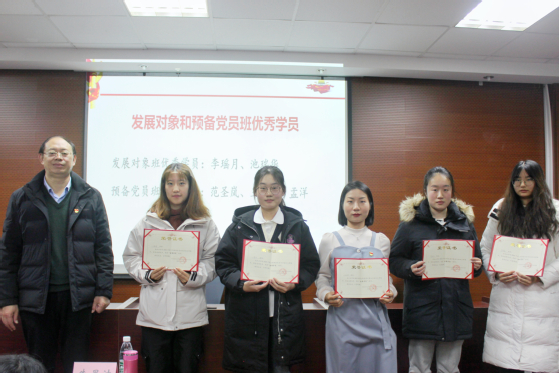 典礼第三项议程为优秀学员公布与经验分享。朱今书记为入党积极分子培训班优秀学员颁发奖状,邓国林书记为发展对象培训班与预备党员培训班优秀学员颁发奖状。