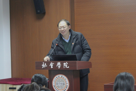 最后,邓国林书记作总结发言。首先,邓书记充分肯定了本学期分党校的党员教育培训工作,并提出下一步工作要求:活动内容要更多彩、形式要更丰富、成效要更显著;随后,他强调要将政治学习、理论学习放在第一位,通过政治理论学习全方位地提升自身素质;最后,邓书记给予大家最诚挚的祝福,期望各位在来年取得更好成绩,期望分党校来年再建新功,期望学院来年各项工作再创新高。