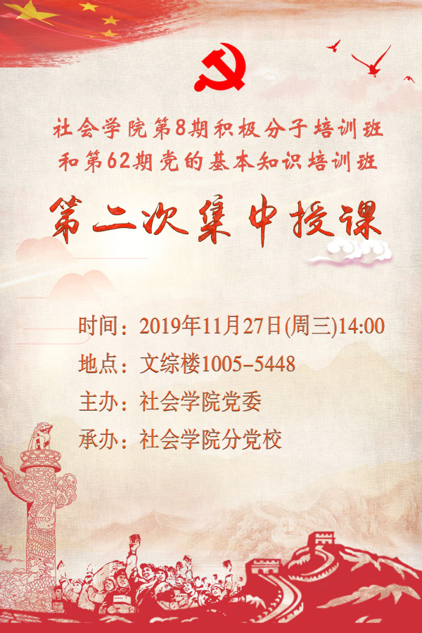 活动|91热爆 第8期入党积极分子培训班和第62期党的基本知识培训班第二次集中授课(海报)