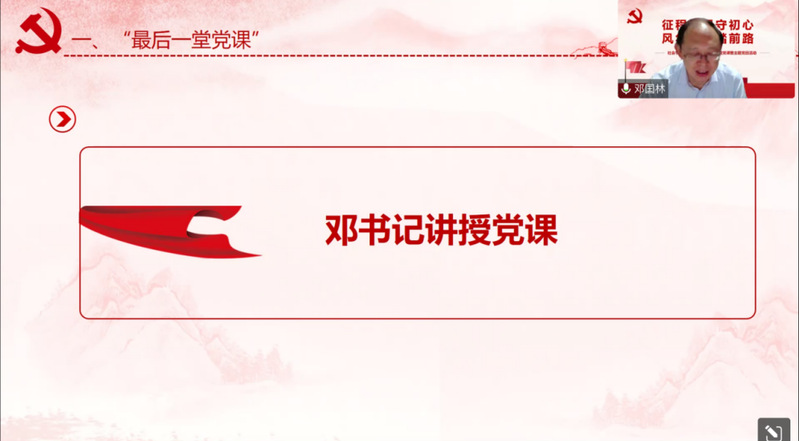 最后,邓国林书记作总结发言。邓书记对毕业生党员提出三点希望,一是希望党员同学要时刻以优秀党员的标准严格要求自己,踏实进取,勇于担当;二是希望各位党员走上工作岗位以后要处理好“公”和“私”的关系,做到大公无私,公而忘私,先公后私,决不能公私不分,假公济私,损公肥私;三是希望毕业班各位党员在今年疫情的特殊毕业季,要努力站好最后一班岗,为身边的同学提供帮助。同时邓书记也由衷地祝福全体毕业生前程似锦,不负韶华。