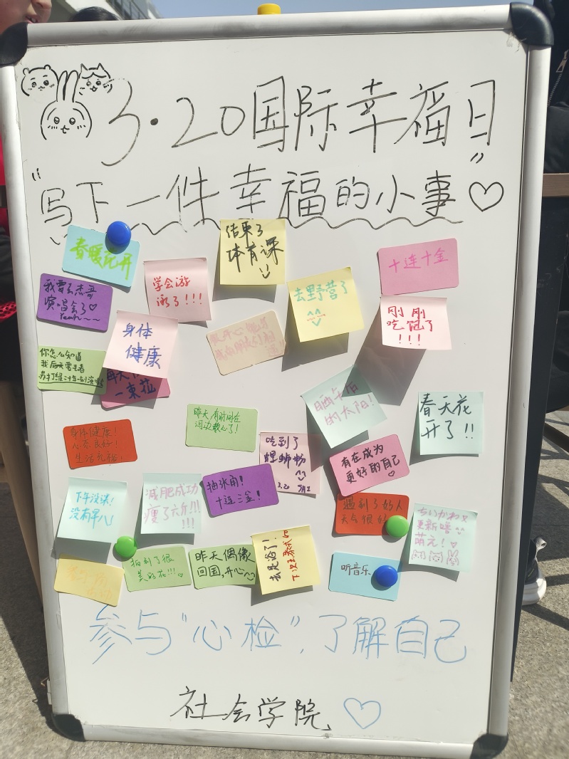 独墅湖校区南区五六食堂前组织开展了“3·20国际幸福日”“你我互陪伴”之心检活动。