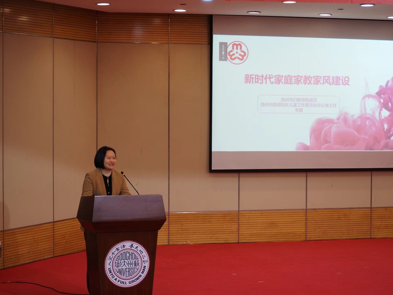 苏州市妇联党组成员、市政府妇儿工委办公室主任朱敏作《新时代家庭家教家风建设》专题讲座。