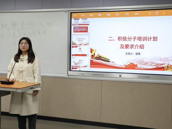 接着,2023级社会工作专业邵笑同学介绍了积极分子的培训计划和要求,系统梳理了培训的流程和安排。她特别强调学员要重视培训过程中的考勤要求,及时履行请假手续。