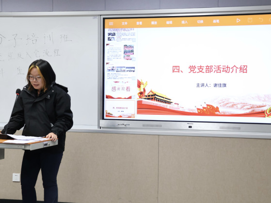 本次讲座分为“党员发展流程介绍”、“积极分子培训计划及要求介绍”、“培训班特色活动介绍”、“党支部活动介绍”四个环节。