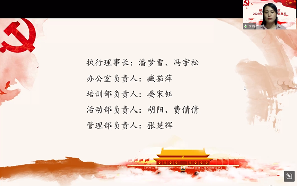 随后,根据工作需要,李玲老师宣读了新一届分党校学生工作组织人员名单。她指出,近年来分党校执行理事长和各部门负责人统筹协调,分工明确、各司其职,充分体现了学生党员的先进性,发挥了学生党员的先锋模范作用,希望新一届分党校工作人员继续加强服务意识,勇于担当,善于作为,为分党校建设添砖加瓦。