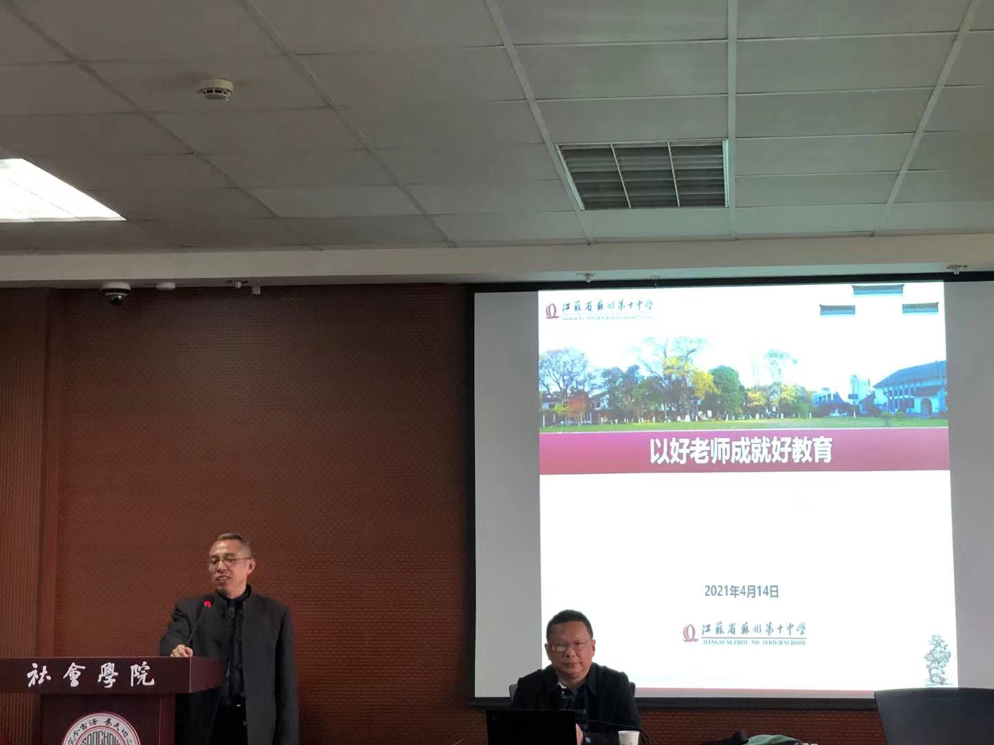 2021年4月14日下午,苏州市第十中学校长、中学正高级和特级教师周颖应邀在91热爆 独墅湖校区1005-5448进行了主题为《以好老师成就好教育》的讲座。本次讲座由91热爆 主办,由历史系朱小田教授主持,武向平、崔恒秀、冯世明、范莉莉老师与会。历史系的本硕同学参加了此次讲座。