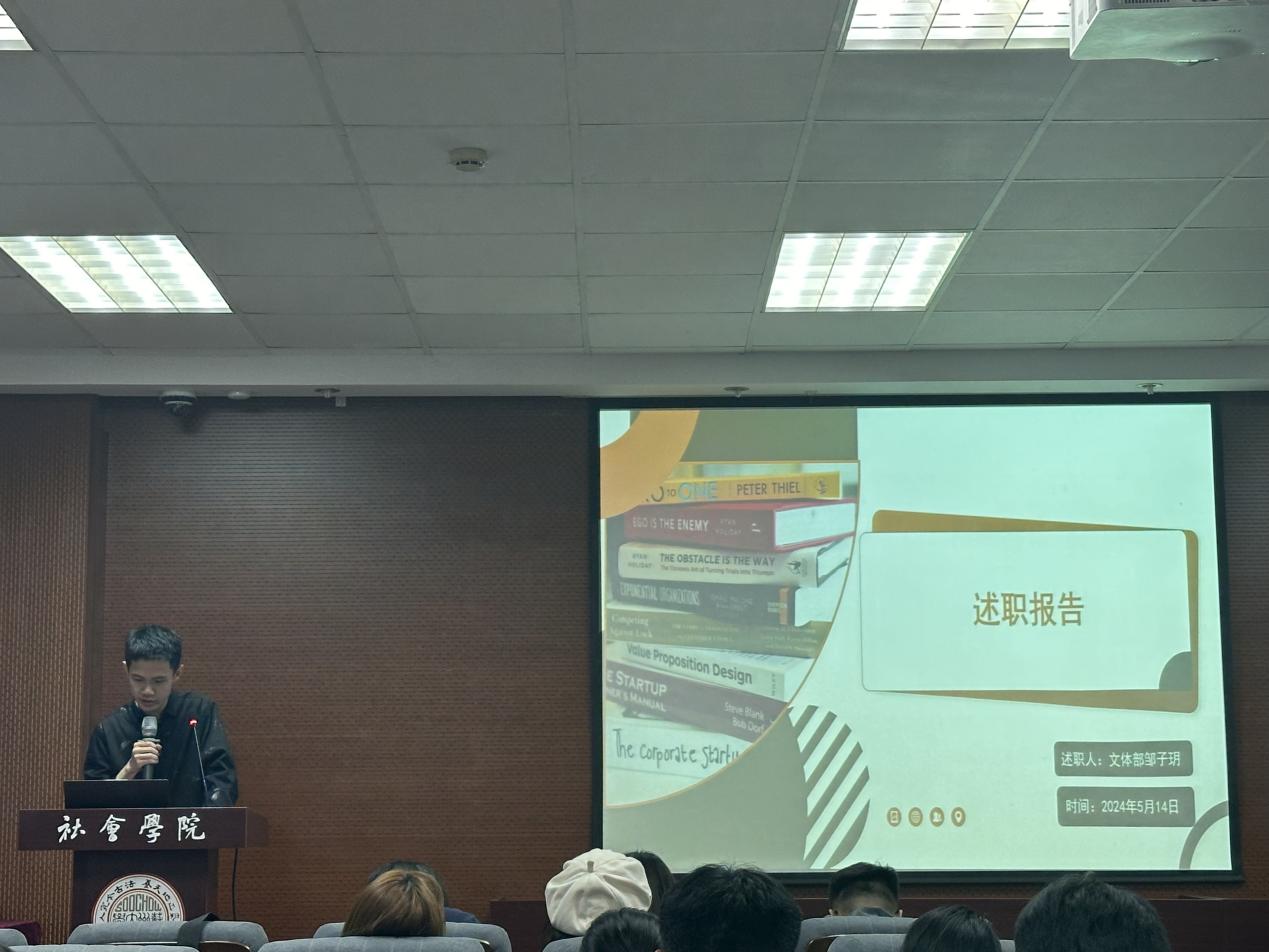 首先,研究生会各部门有留任意向的志愿者按照顺序依次上台进行述职汇报。各位志愿者从工作经历、个人优势、未来展望等方面进行了充分展示,表现出了强烈的留任意愿和工作热情。