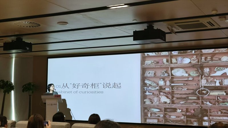 许潇笑女士为维也纳大学历史学硕士,同时也是优秀策展人、OpenCuration Lap的联合创始人,在国内外多家博物馆的展陈工作中有着丰富的经验。许女士以一位资深策展人的视角,深入解析了博物馆在国际范围内的源起与发展,全面阐述了国外博物馆展品陈列的技艺,同时将自己多年累积的工作经验与体悟娓娓道来。在场的同学们无不被许女士的讲解所吸引,聚精会神地聆听。