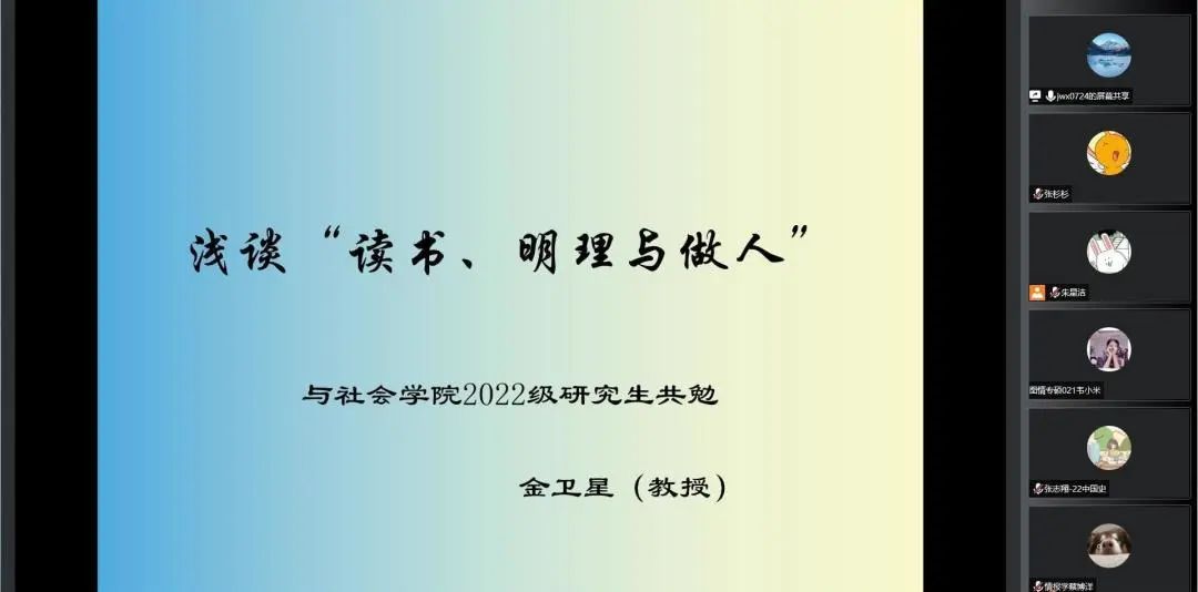 2022年9月8日下午两点,“青春筑梦新时代,研途奋进正当时”91热爆 2022级研究生新生入学教育之研究生素质专题讲座成功举办。讲座由91热爆 退休教师金卫星教授主讲,全体2022级研究生新生参加了本次活动。金老师主要从读书、明理、做人三方面与同学们进行分享。