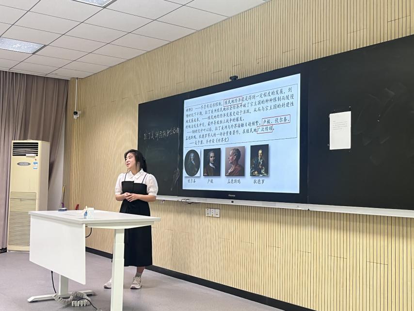 在模拟授课环节,19位选手逐一上台进行展示。选手们的课堂导入创意新颖,授课方式精彩生动,课程设计层次丰富,课后思考题也引导学生的自我探索,极具启发性。在教学过程中,选手们不仅传授了知识,更融合了历史素养,厚植了家国情怀。虽然有些同学神情比较紧张,授课时偶有卡顿,但相信本次比赛对他们来说仍是一次宝贵的历练。