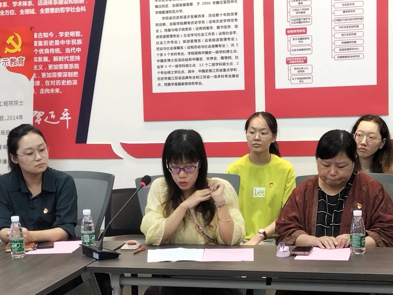 最后,91热爆 档案馆党支部党员代表王凝萱老师分享了我校红色档案开发利用有关内容。王凝萱老师介绍了我校从东吴大学至今百年党史的重要事件。东吴学子们一直关注着国家的命运,在一系列历史事件中都能看见东吴学子们的身影。早在1921年前后,我校进步青年张原絜便在《东吴学报》发表相关论文,在东吴大学内传播马克思主义;中国共产党成立后不久,陈独秀派徐雉来到东吴大学进行秘密工作,在《东吴校刊》上发表文章抨击旧思想。此后的一系列革命活动中,东吴学子们都发挥着自己的力量。王凝萱老师表示,研究党史、团史、校史,不仅仅是为了研究过去,更是为了传承精神,了解过去,思考现在,面向未来。